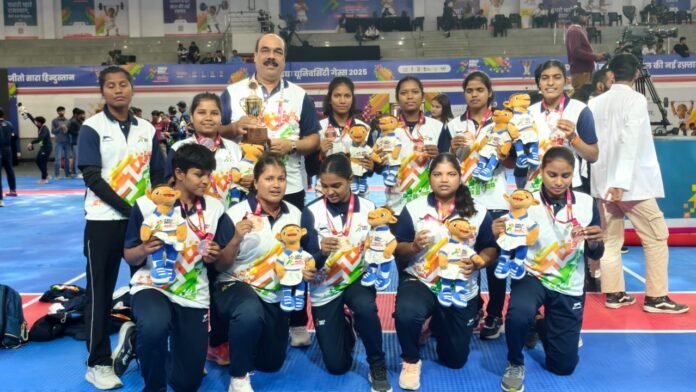 बिलासपुर। बीकानेर (राजस्थान) में 1 से 5 दिसंबर 2025 तक आयोजित खेलो इंडिया यूनिवर्सिटी गेम्स में अटल बिहारी वाजपेयी विश्वविद्यालय, बिलासपुर की महिला कबड्डी टीम ने शानदार प्रदर्शन करते हुए ब्रॉन्ज मेडल अपने नाम किया। इस प्रतियोगिता में देशभर से कुल 8 पुरुष और 8 महिला टीमें क्वालीफाई हुई थीं। छत्तीसगढ़ से अटल बिहारी वाजपेयी विश्वविद्यालय ने 2024-25 में क्वालीफाई किया था।