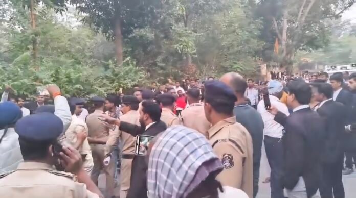 कोर्ट परिसर में दोनों पक्षों की नारेबाजी, पुलिस ने संभाला मोर्चा, SC/ST एक्ट की धाराएं भी जोड़ी गईं।