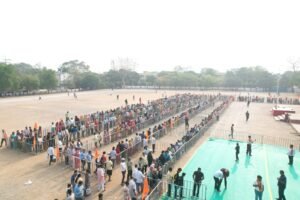 पुलिस मैदान में रात तीन बजे से लगी कतारें, 5000 से अधिक श्रद्धालुओं ने की पूछताछ।